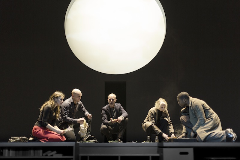 Van Hove further stresses the ageless, placeless nature of Antigone’s dilemma by projecting huge, abstract scenes onto the back wall. A huge circular cut-out at the start of the play gives the impression of a solar eclipse – a traditional signifier of the intervention of the gods – before slowly rolling aside to let light stream in and bath the stage in a clinical brightness. It is a production where everyone’s actions will come under the microscope and be subjected to judgement; by the gods, by the playwright and by the audience.