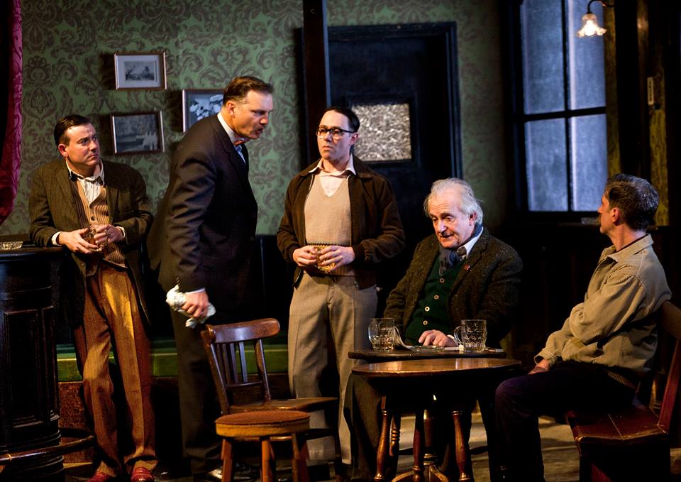 For Hangmen he moves out of the small Irish villages where he made his name. However even as the landscape changes, the faces remain resolutely familiar. In the depressed Northern landscape of the 1950’s comes a cast of characters every bit as recognisable as those inhabitants of rural Ireland; spending their days congregating in the local pub, and being every bit as feckless as those seen in The Cripple of Inishmaan. Lacking any real clear sense of backbone, they spend their time revolving around the kind of minor celebrity that can hold together a kingly court in a land like this; David Morrisey’s Harry Wade – Britain’s last hangman, and every bit the self-proclaimed equal of that ‘bloody Pierrepoint’.
