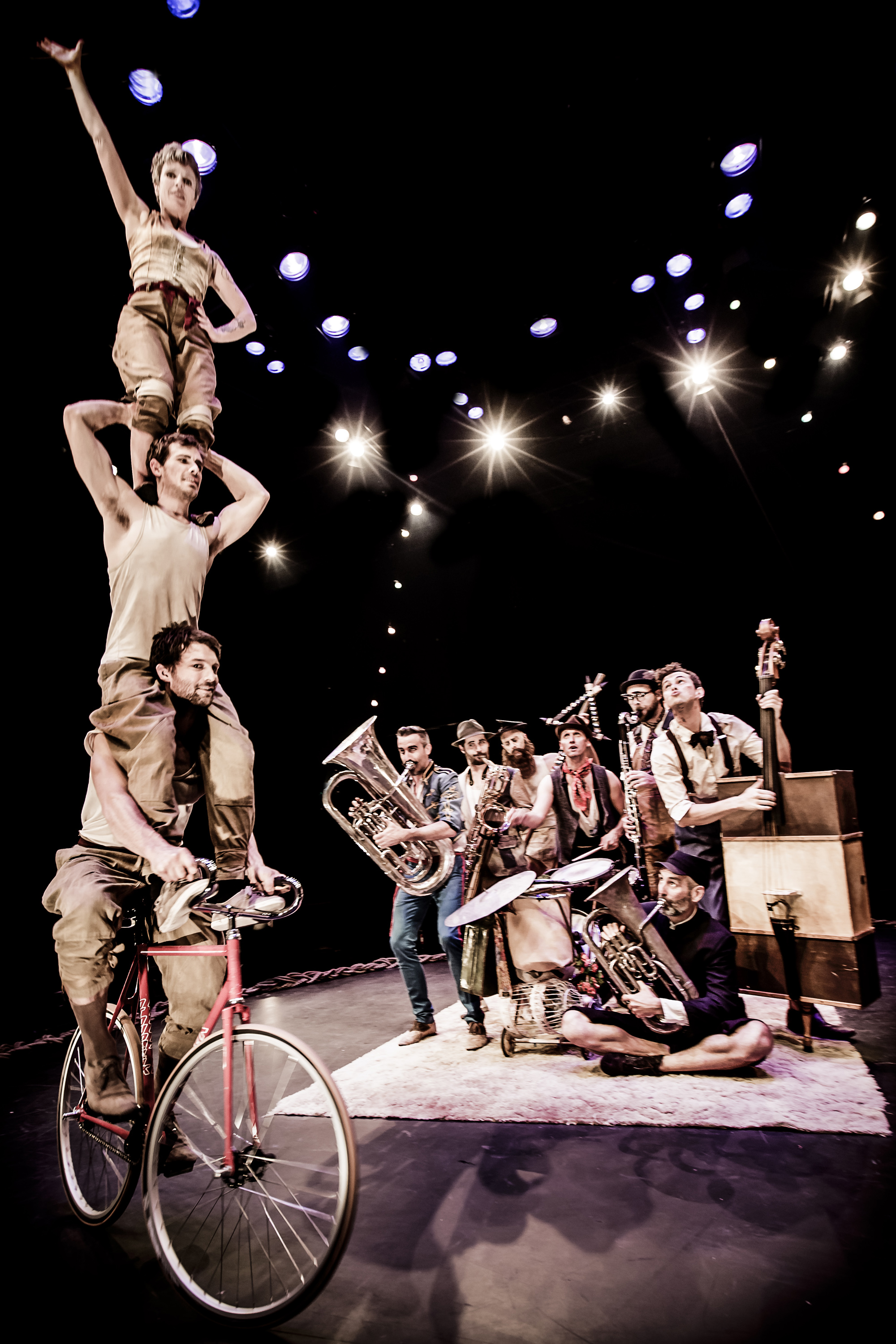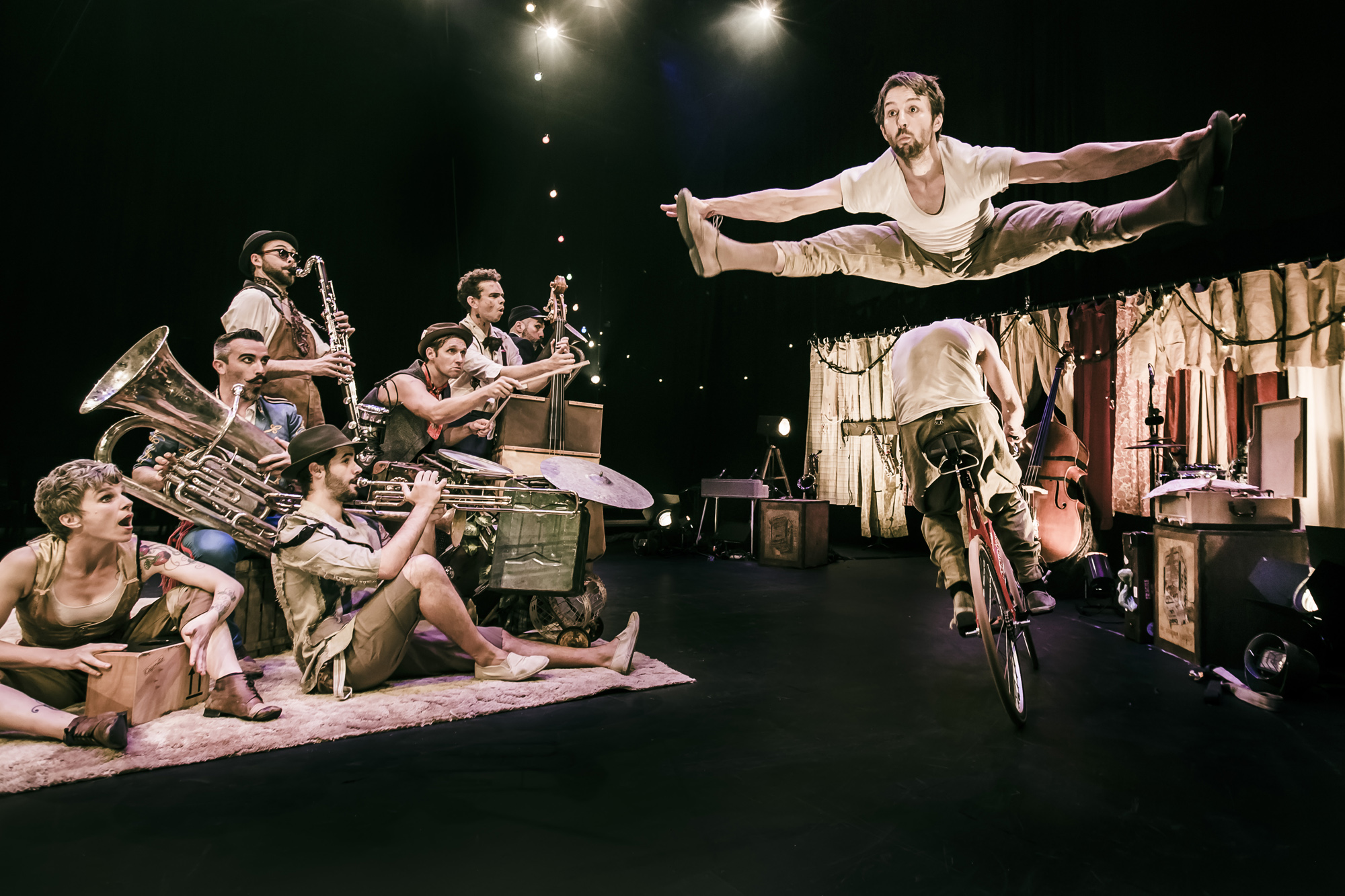 All that said, Scotch & Soda is a highly entertaining show. The Australian troupe is a mixture of skilled circus performers and fantastically enjoyable horn and drum infused jazz. Their style is perhaps inspired by the idea of early 20th century touring circuses – a hipster meets hillbilly confection where moustaches meet muscles, where a jug-band meets a classically trained double-bassist.