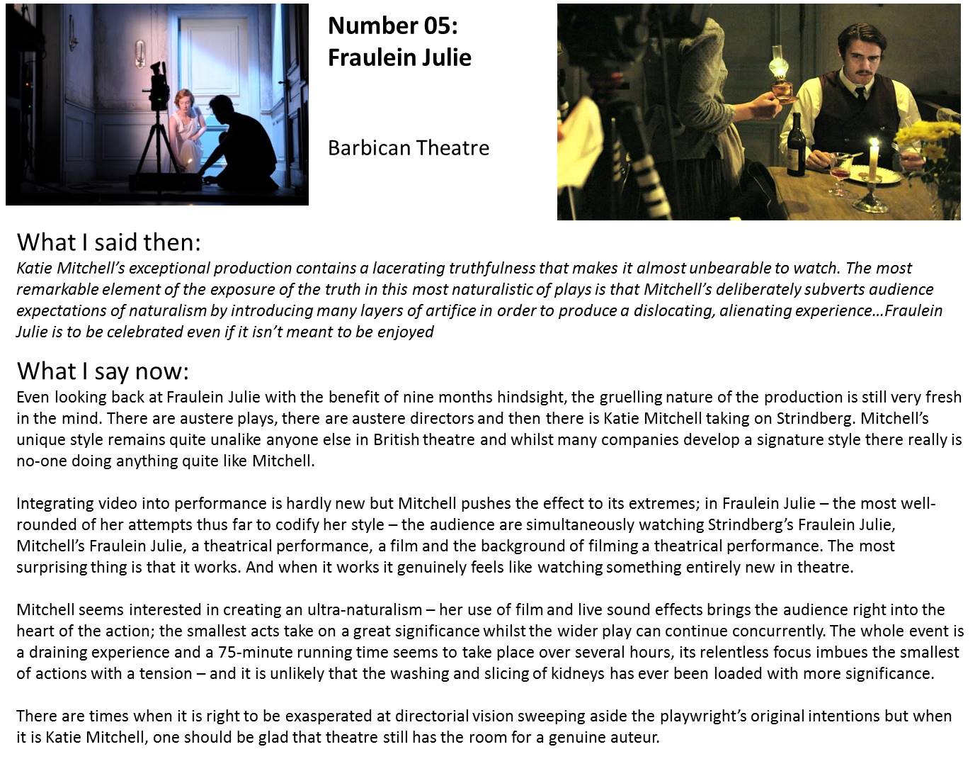 And the Winner is… Katie Mitchell for Fraulein Julie (Barbican Theatre)
